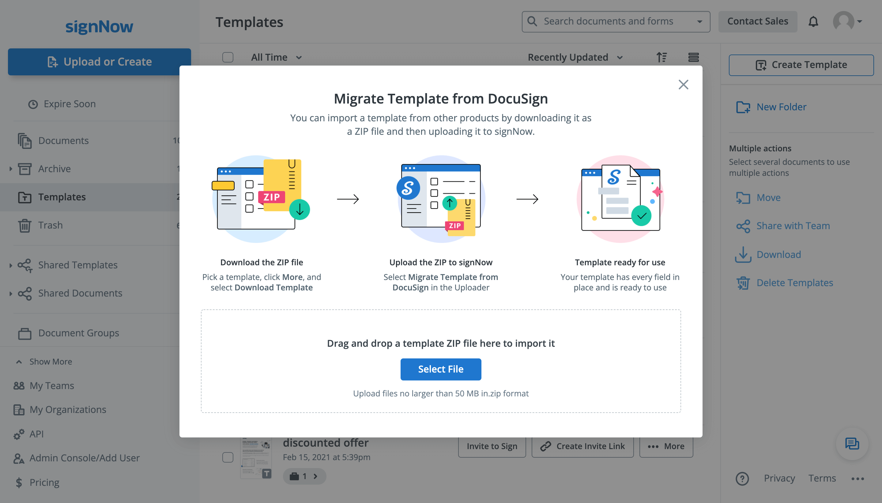 Learn how to easily transfer documents and templates from DocuSign to signNow