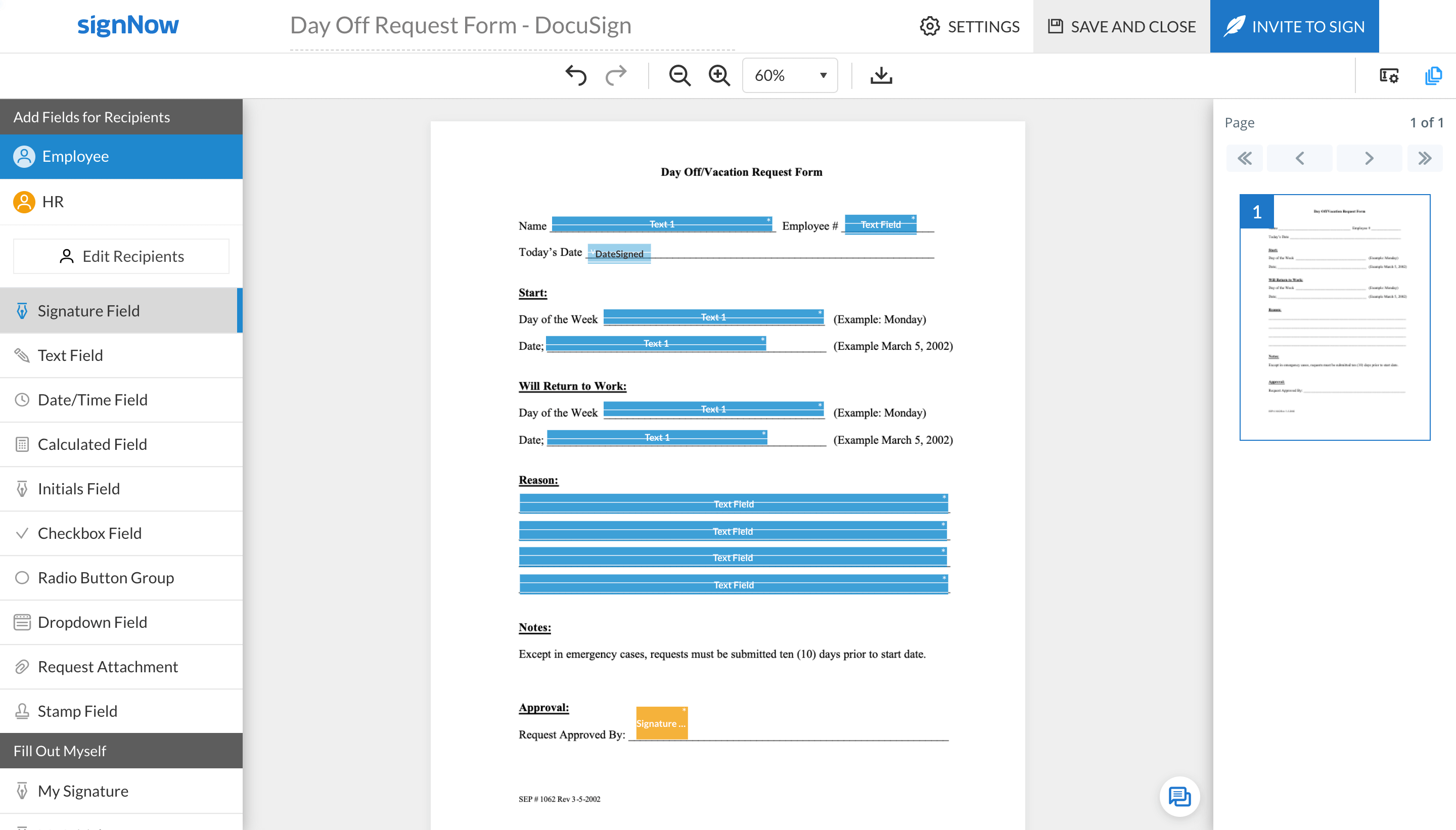 Templates imported from DocuSign retain all the fillable fields and signer role settings, so you don’t have to spend time reconfiguring your templates in signNow.