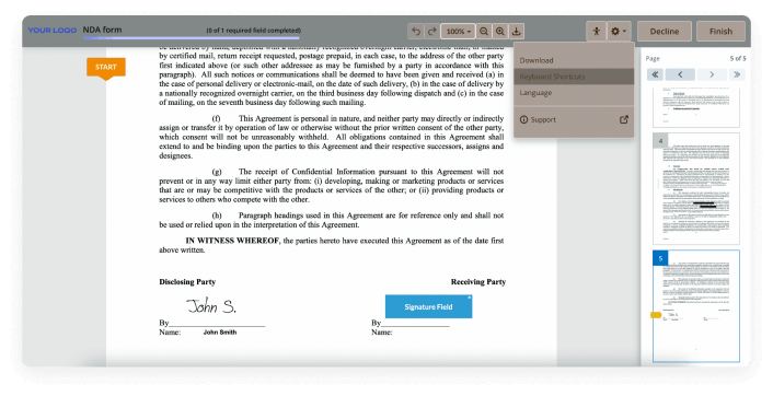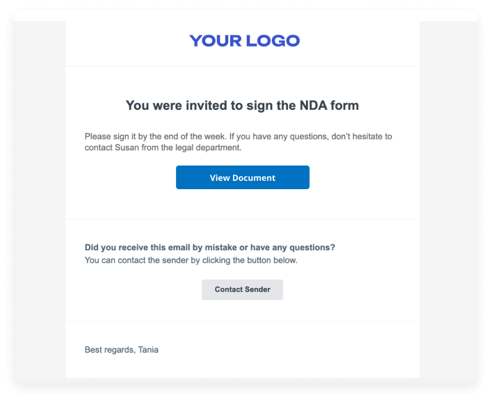 Keep your brand identity at the forefront by using your logo and other brand elements at every step of the signing process.