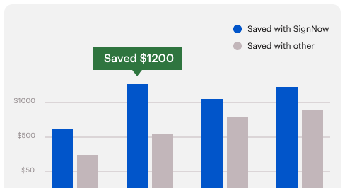 Up to 2.4x cheaper than the leading eSign API provider. Based on a feature by feature comparison, airSlate SignNow provides the same extensive feature set as the leading provider at a much lower cost.