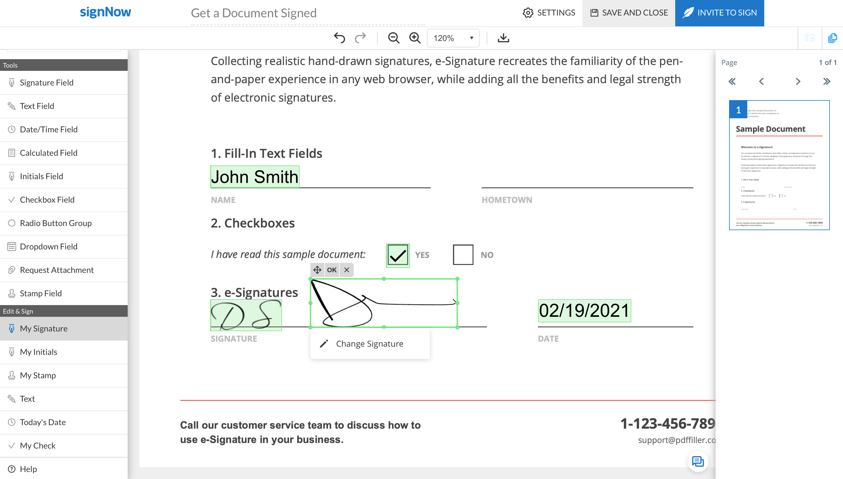 Finally, apply your stamp to the document by selecting My Stamp and clicking anywhere on the document.