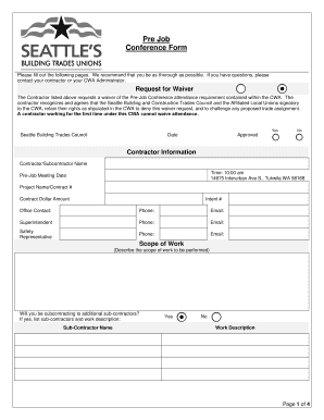 Get more for Pre Job Conference Form Seattle gov