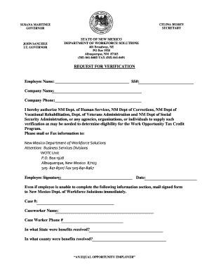 Legal use of the Request For Verification New Mexico Department Of Workforce