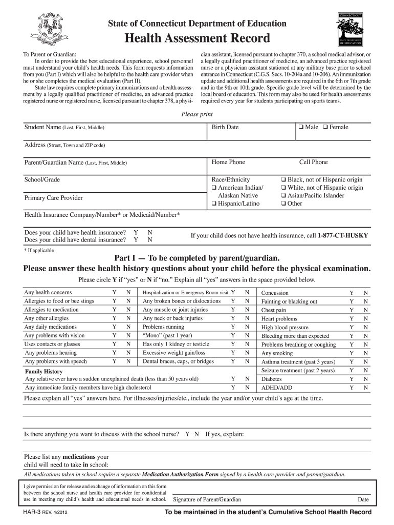 Ct Health Assessment Form