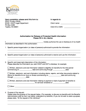 How to Use the Authorization For Release Of Protected Health Information KDHE Kdheks