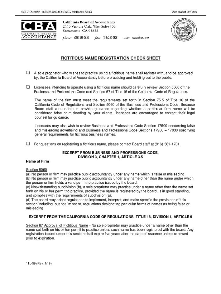Fictitious Name Registration Check Sheet California Form