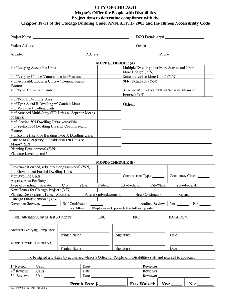Using the City of Chicago Mopd form involves several steps to ensure that all required information is accurately provided. First, gather all necessary project details, including descriptions, timelines, and stakeholder information. Next, fill out the form, ensuring that all sections are completed in accordance with city guidelines. Once completed, the form can be submitted electronically or printed for physical submission, depending on the requirements set forth by the city.