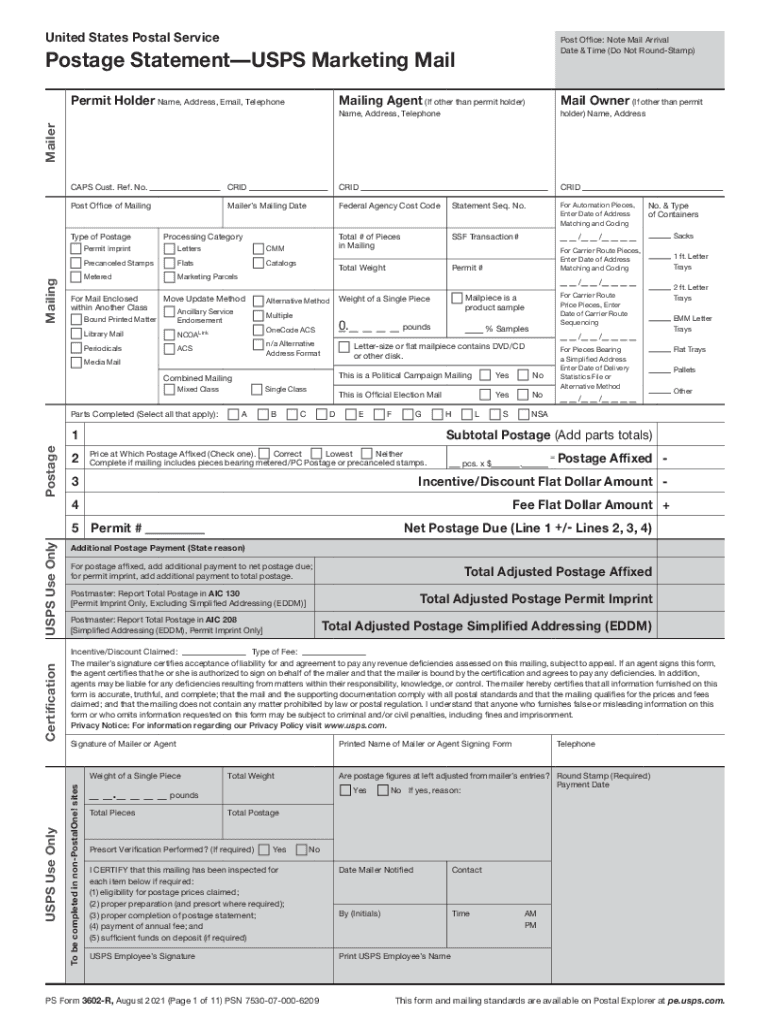 The USPS PS 3600 EZ form is legally recognized for mailing purposes when filled out correctly. It serves as a declaration of the postage paid and the type of mail being sent. Compliance with USPS guidelines is crucial to avoid penalties or delays. The form must be completed accurately to ensure that the postage is valid and that the mail is processed without issues. Users should be aware of any updates to USPS regulations that may affect the use of this form.