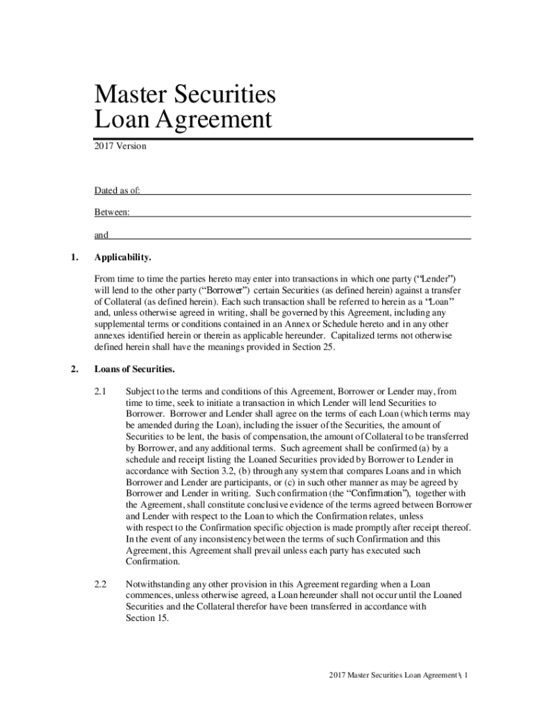 Understanding the key elements of the 2017MSLA Master Securities Loan Agreement is essential for parties entering into a securities lending arrangement. Important components include: