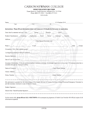 Immunization Form Admissions Carson Newman College Admissions Cn