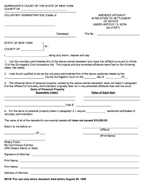 The Affidavit of Form New York is a legal document used to affirm the truth of certain statements or facts in various legal proceedings. This form is often required in situations involving estates, property transfers, or other legal matters where a sworn statement is necessary. It serves as a written declaration made under oath, providing credibility and legal weight to the assertions made within it. Understanding the purpose and requirements of this affidavit is essential for ensuring compliance with New York state laws.