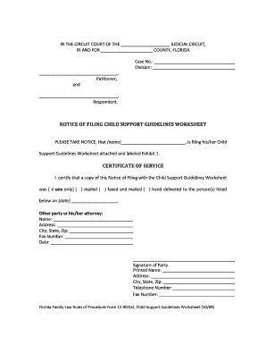 Florida Child Support Guidelines Worksheet Fillable Form