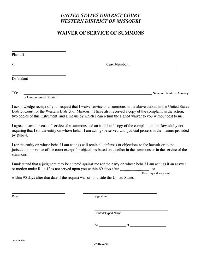 The district forms for the Western District of Missouri are legally binding documents when completed and submitted according to court rules. They serve as official records of the actions taken by parties in a legal proceeding. Proper use of these forms ensures compliance with court procedures and can affect the outcome of cases. It is crucial to adhere to the guidelines provided by the court to maintain the integrity of the legal process.