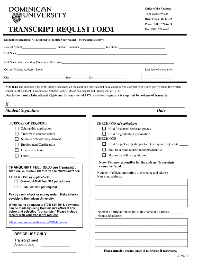 To obtain a Dominican University transcript, students can follow a straightforward process. The university provides several options for requesting transcripts, ensuring accessibility for all students. Here are the steps to obtain your transcript: