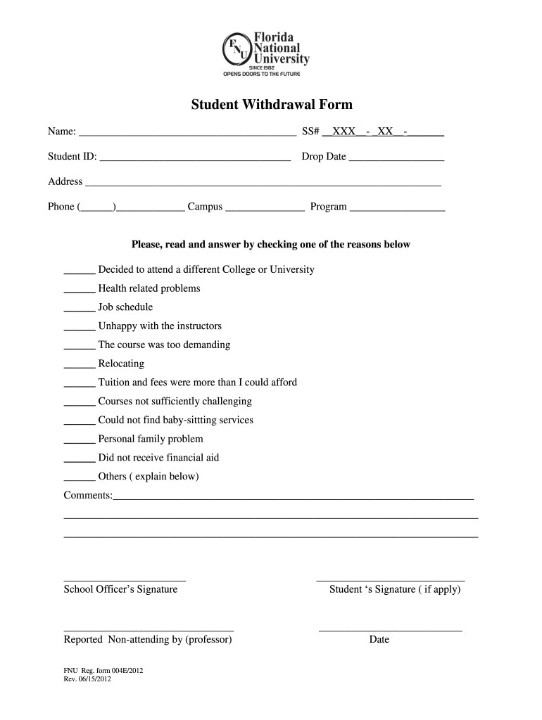 Find and fill out the correct fnu withdrawal online form