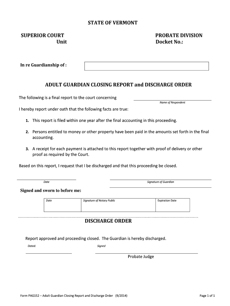 Form PAG 152 Adult Guardian Closing Report and Discharge