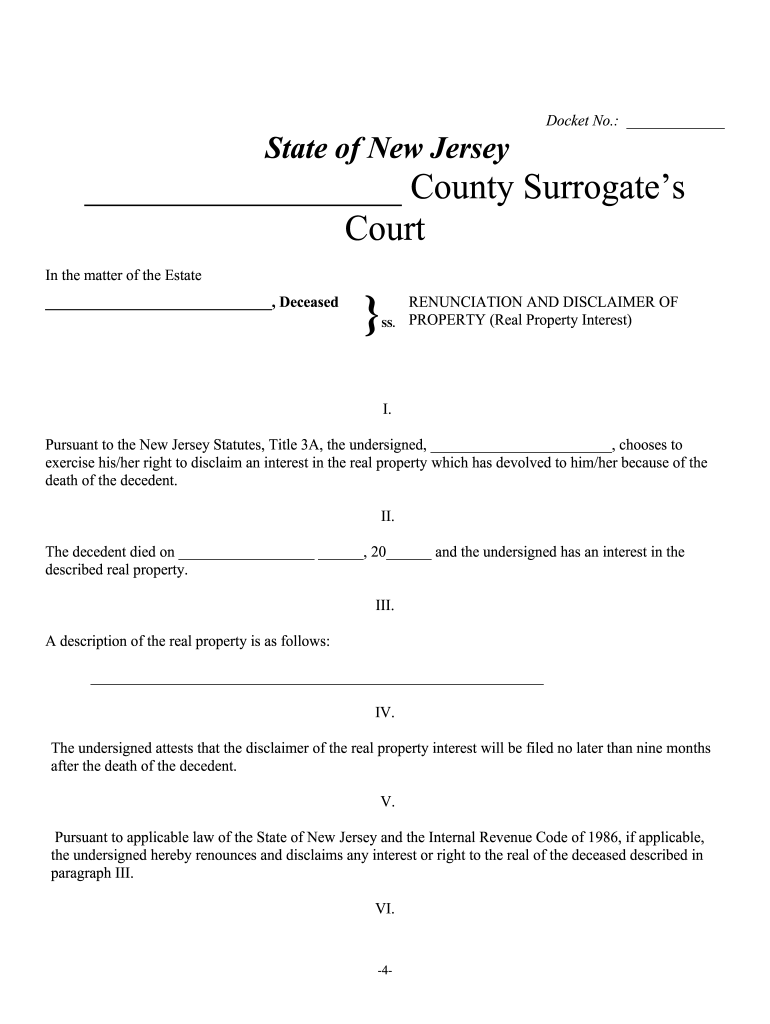 When preparing to file the New Jersey disclaimer, individuals should gather the following documents: