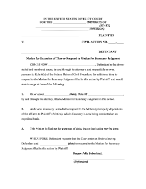 Get more for Motion Requesting Additional Time To Respond To Motion For Summary Judgment With Notice Of Motion