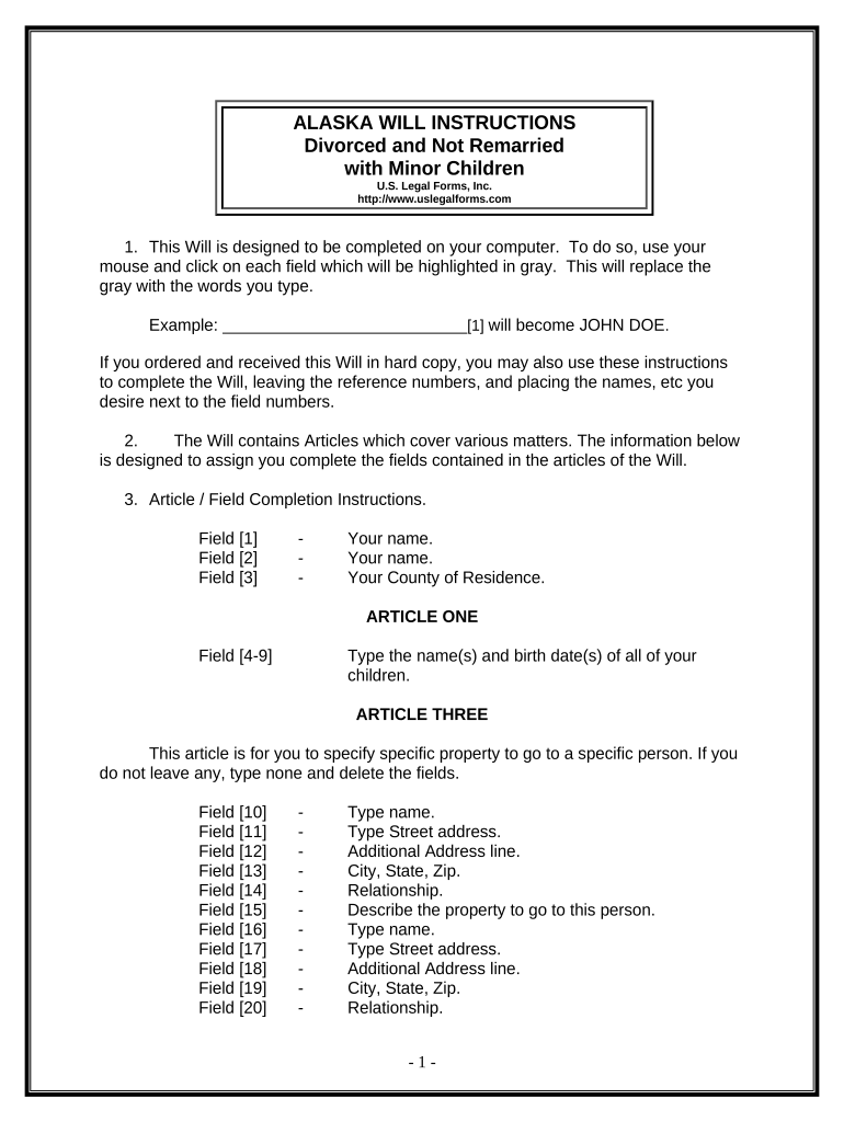 How to use the Legal Last Will And Testament Form For Divorced Person Not Remarried With Minor Children Alaska