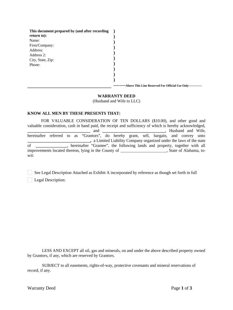 Get more for Warranty Deed From Husband And Wife To LLC Alabama