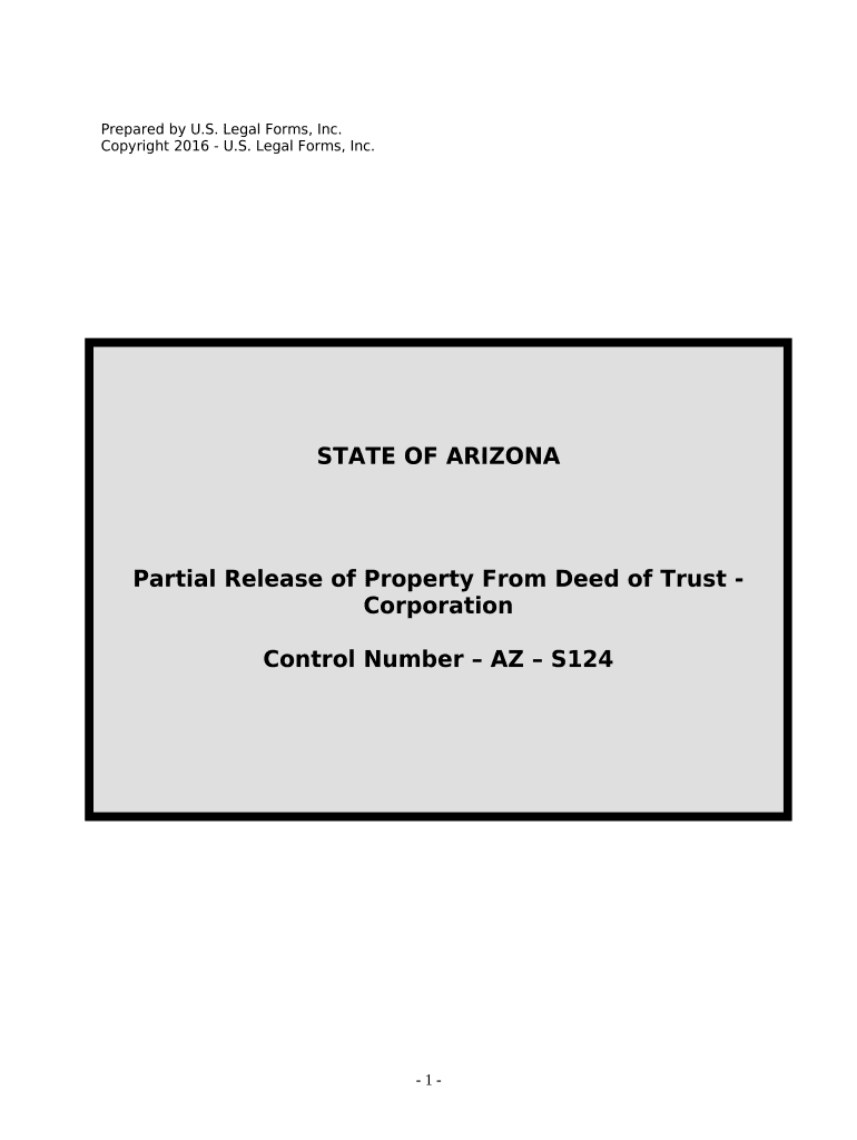 Get more for Partial Release Of Property From Deed Of Trust For Corporation Arizona