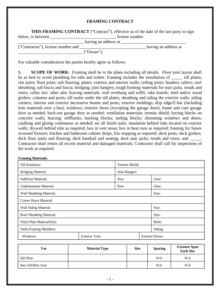 - Define the scope of work: Detail the specific framing tasks to be performed, including any relevant specifications.