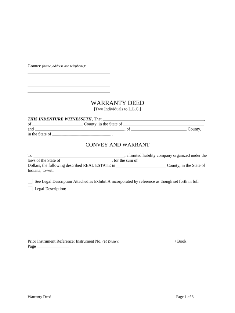 Legal Use of the Warranty Deed From Two Individuals To LLC Indiana