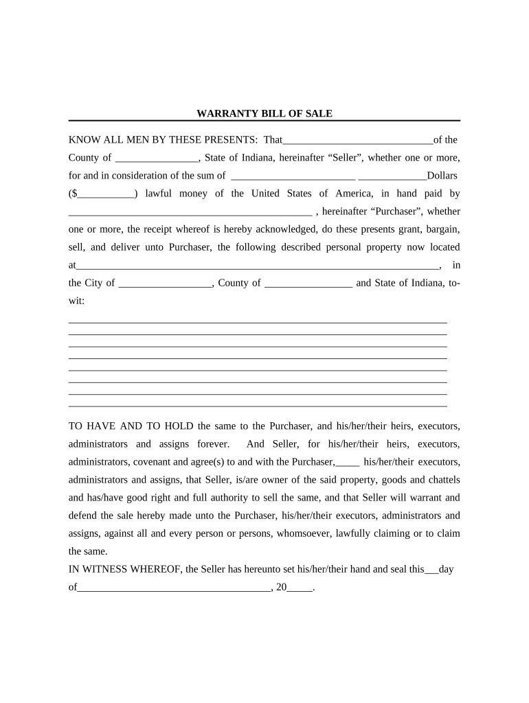 Each state may have specific rules and regulations governing the use of a bill sale warranty. For example, in Indiana, the document must include certain information to be considered valid. It is important to check state laws for any additional requirements, such as notarization or specific wording. Understanding these rules can help ensure that the bill sale warranty is enforceable and meets legal standards.