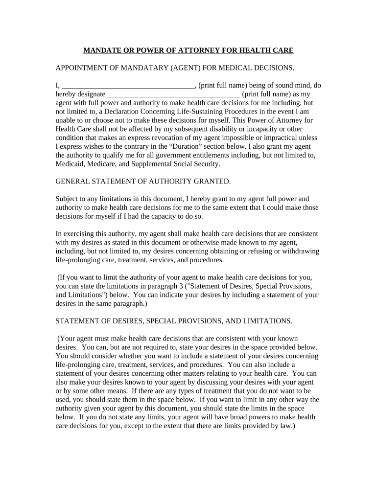 Get more for Louisiana Power Of Attorney For Health Care Louisiana