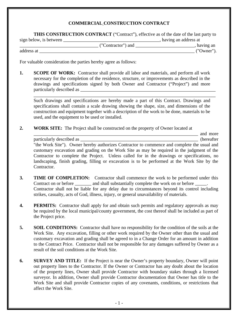 A well-structured Commercial Contract for Contractor Michigan typically includes several essential components:
