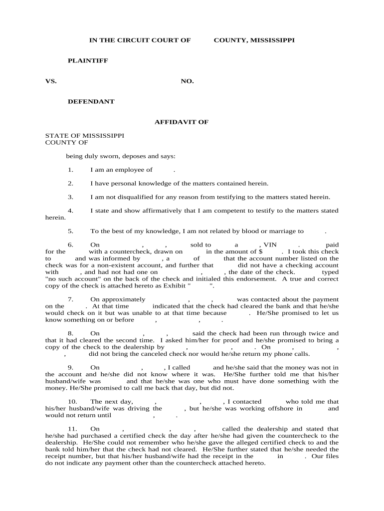 Several key elements must be present in a Mississippi affidavit for it to be considered valid: