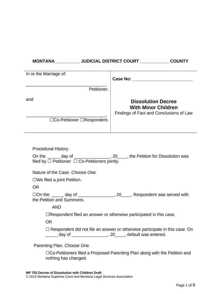 Completing the Montana Law Final involves several key steps to ensure accuracy and compliance with state regulations. First, both parties should gather all necessary documentation, including financial records and any existing agreements. Next, they should negotiate the terms of the dissolution, focusing on asset division and custody arrangements. Once an agreement is reached, the final document must be drafted, incorporating all agreed-upon terms. Finally, both parties must sign the document in the presence of a notary public before submitting it to the court for approval.