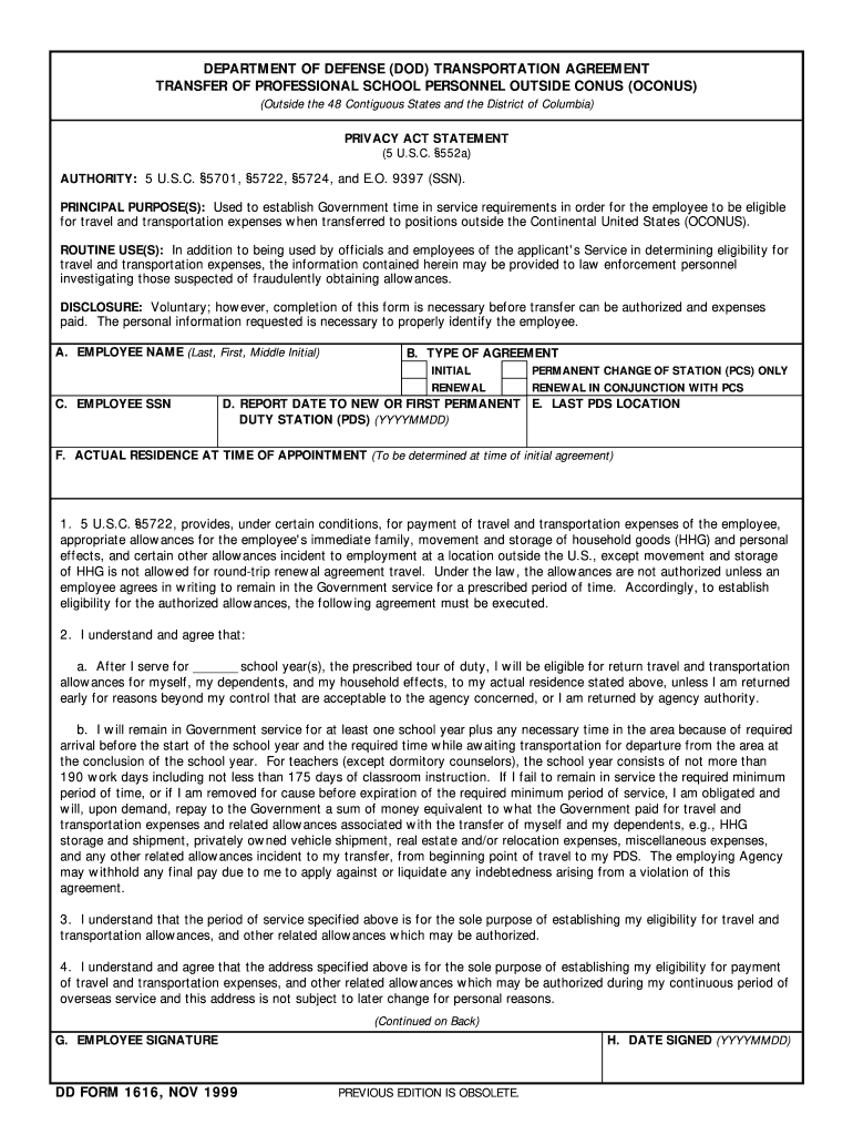 Find out other dd form 1616 nov 1999