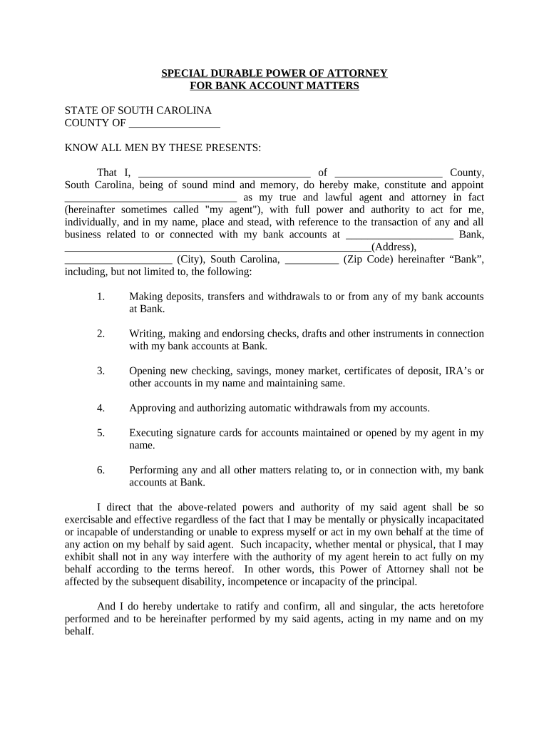 Get more for Special Durable Power Of Attorney For Bank Account Matters South Carolina