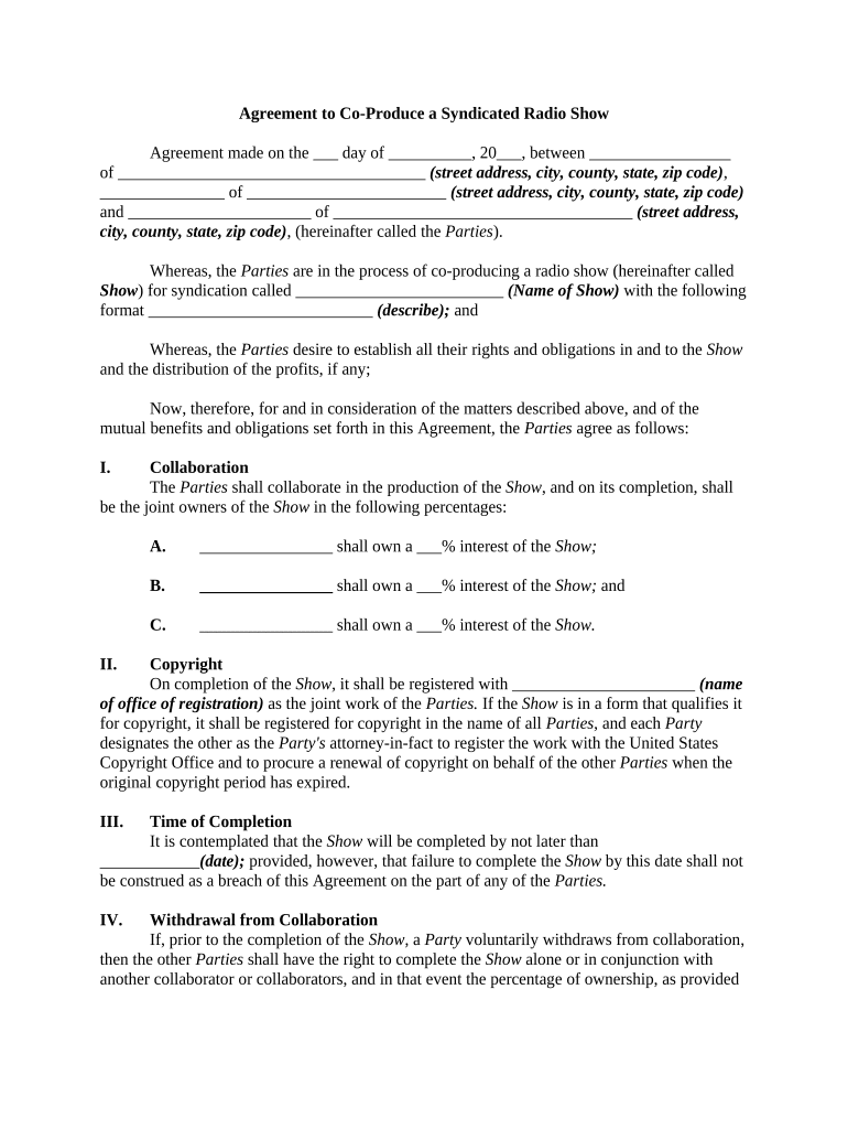 Completing the Agreement Radio Show requires careful attention to detail. Start by gathering all relevant information from each party. Then, draft the agreement by including the following components: