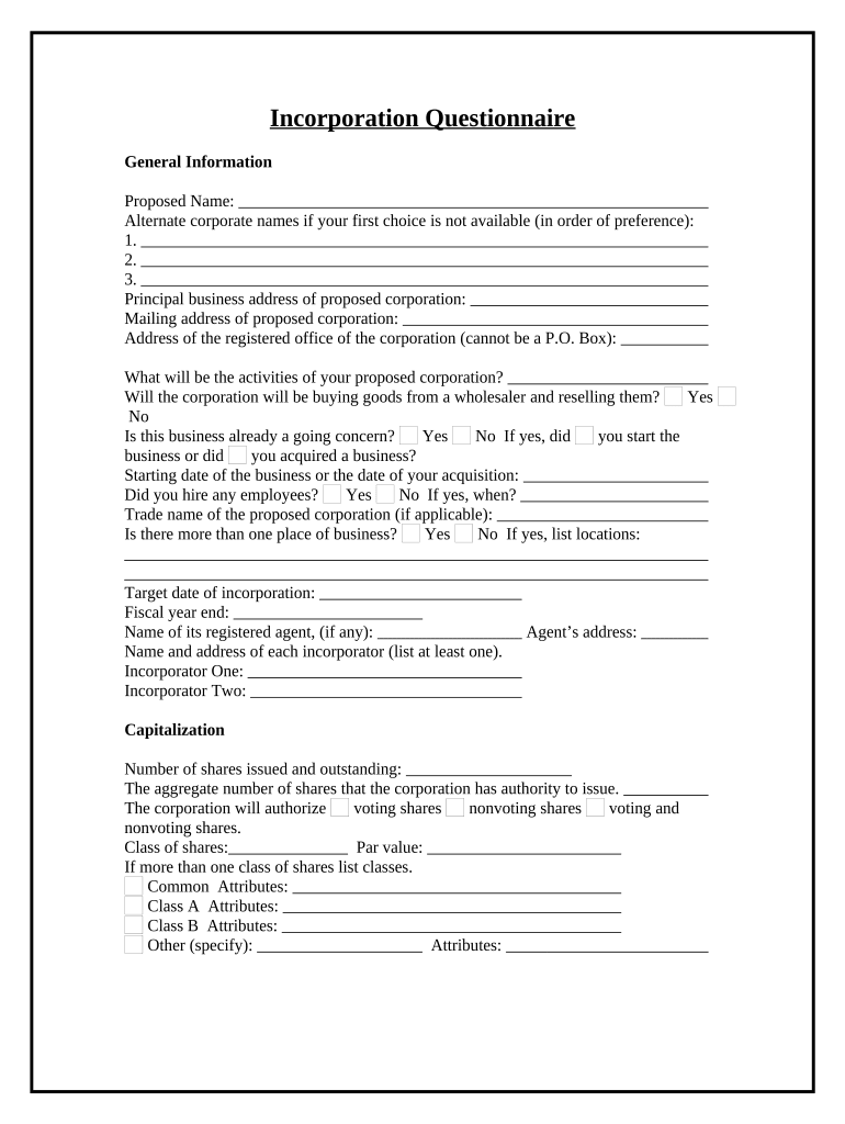 Incorporation Questionnaire Form