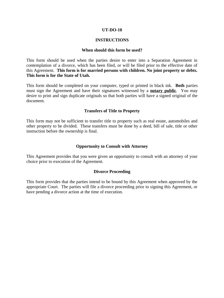 In Utah, specific rules govern the use of the Marital Domestic Separation and Property Settlement Agreement. These include: