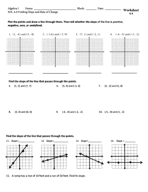 Quick guide on how to complete algebra 1 sol a 6 finding slope and rate of change worksheet 4 4