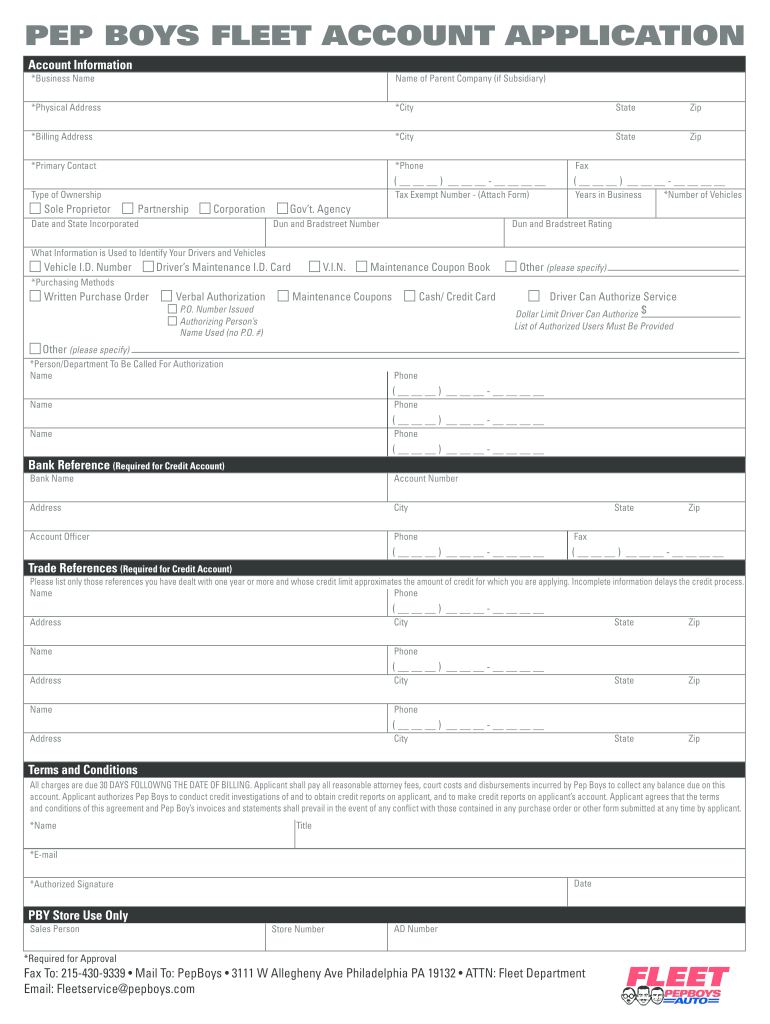 The Pepboys Commercial Account is a specialized account designed for businesses that frequently purchase automotive parts and services from Pep Boys. This account provides various benefits, including credit options, exclusive discounts, and tailored services that cater to the needs of commercial customers. By establishing a Pepboys commercial account, businesses can streamline their purchasing process and enhance their operational efficiency.