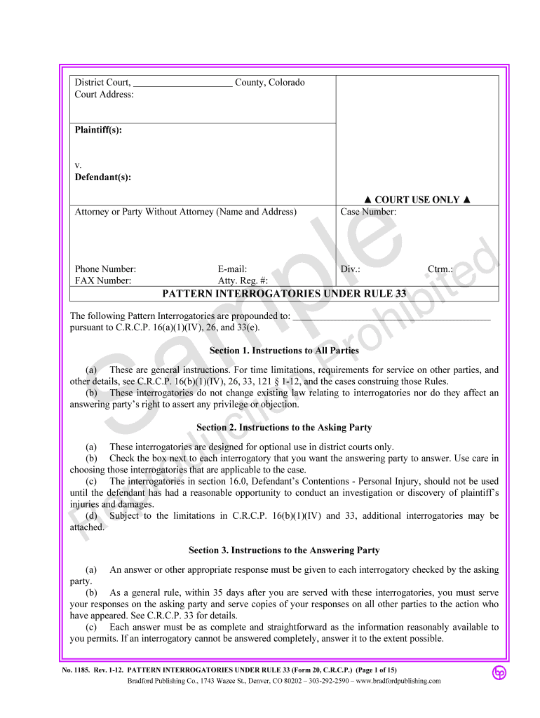 Find out other colorado pattern interrogatories 2019
