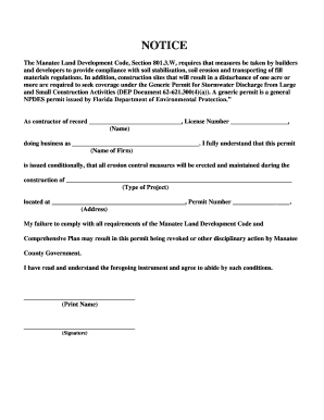 Using airSlate SignNow, you can easily fill out the Manatee County Erosion Form electronically. Our user-friendly interface allows you to upload the form, fill in the required information, and eSign it securely. This streamlines the submission process and keeps your project on track.