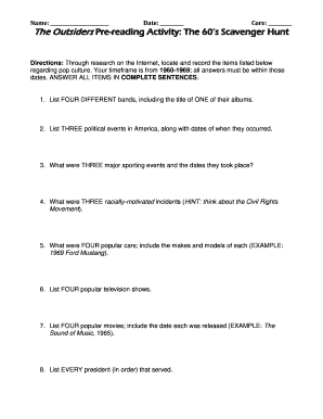 Get more for the outsiders pre reading activity the 60s scavenger hunt answer key