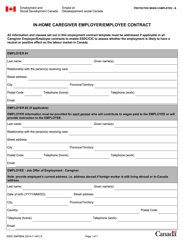 The Emp5604 form, also known as the ESDC Emp5604, is a critical document used in the context of employment and caregiver agreements in Canada. This form is specifically designed for employers who wish to hire foreign workers under the Temporary Foreign Worker Program. It outlines the details of the employment arrangement, ensuring compliance with Canadian labor laws and regulations. The Emp5604 serves as a formal declaration of the job offer and the conditions of employment, which is essential for both the employer and the employee.