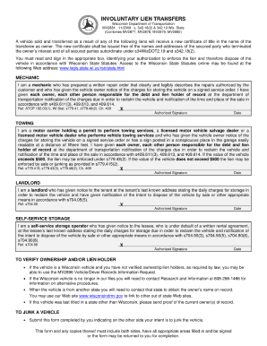 In Wisconsin, the MV2881 must comply with specific state regulations regarding lien documentation. These rules dictate the necessary information to be included on the form, the process for submission, and the fees associated with filing. It is important for users to familiarize themselves with these regulations to ensure that their lien is properly recorded and enforceable.