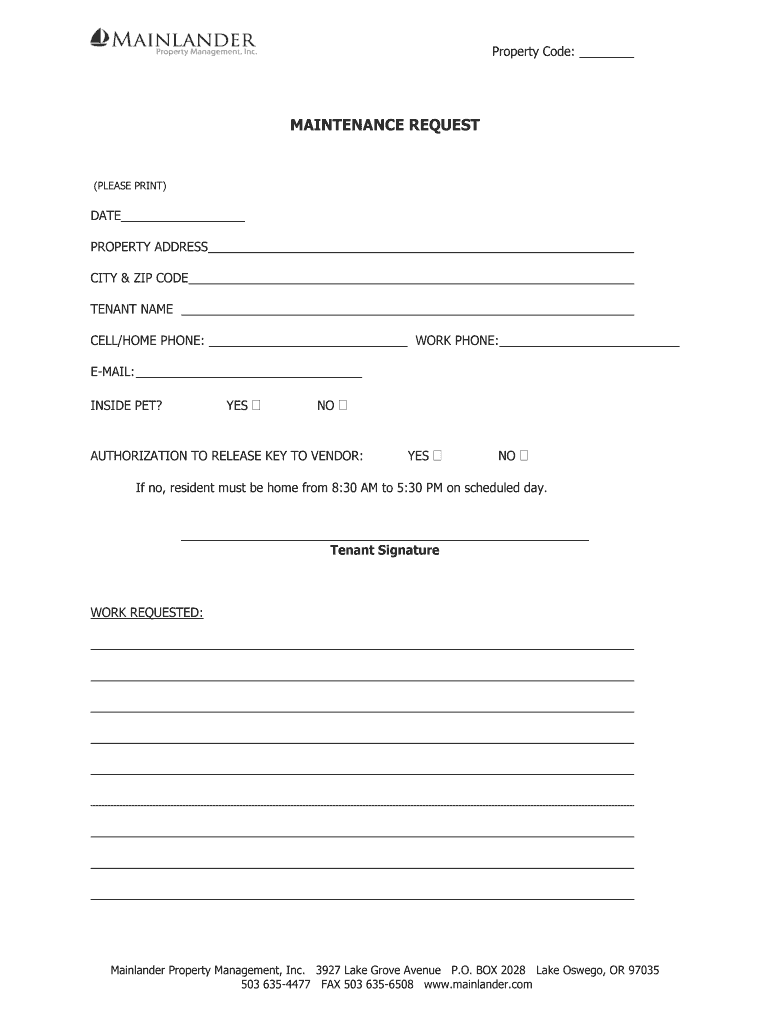 Ensure Accuracy on Maintenance Request Form for Mainlander Property Management