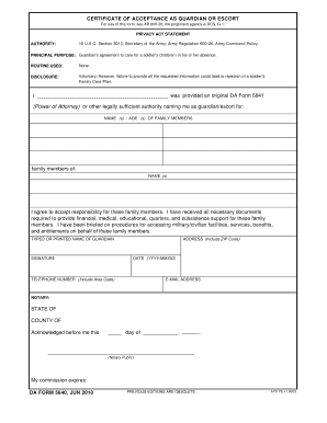The DA Form 5840 can be obtained through various channels. Service members can access the form online through the official Army Publishing Directorate website or their unit's administrative office. It is also available at military installations and can be requested from personnel offices. Ensuring that you have the most current version of the form is essential, as updates may occur. The form is typically available in both printable and fillable formats, making it convenient for service members to complete their Family Care Plan.