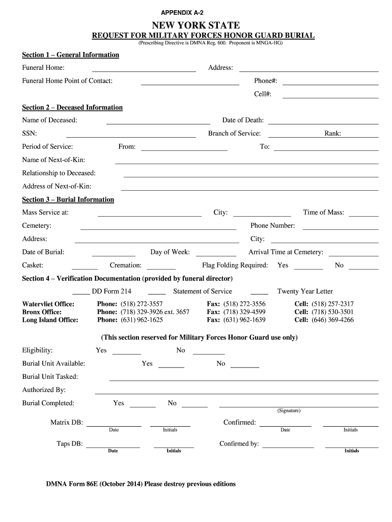 Using the Dmna Form 86e involves several straightforward steps. First, individuals must obtain the form, which can typically be found on the official New York State Division of Military and Naval Affairs website. Once the form is in hand, applicants should carefully read the instructions provided. Completing the form accurately is crucial, as it ensures that the request is processed efficiently. After filling out the required information, the form can be submitted according to the specified methods, which may include online submission or mailing it to the appropriate office.