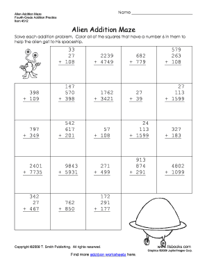 Alien Addition Maze; Fourth Grade Addition Practice Worksheet Fourth Grade Addition Practicewith a Fun Math Maze Form