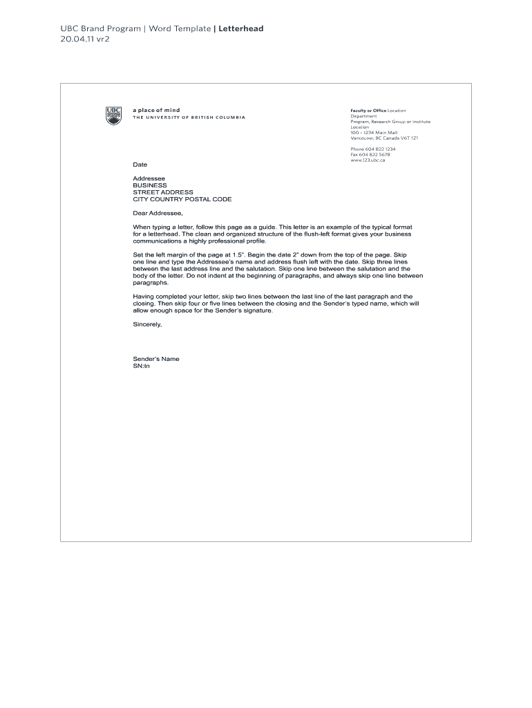 The UBC letterhead includes several key elements that contribute to its professional appearance. These elements typically consist of: