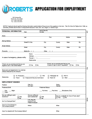 Completing the Roberts Company Winterville NC form requires several steps to ensure accuracy and compliance. First, gather all necessary information, including personal details and any relevant documentation. Next, fill out the form carefully, ensuring that all fields are completed. After completing the form, review it for any errors before submitting it digitally or in person, depending on the submission guidelines provided by the company.